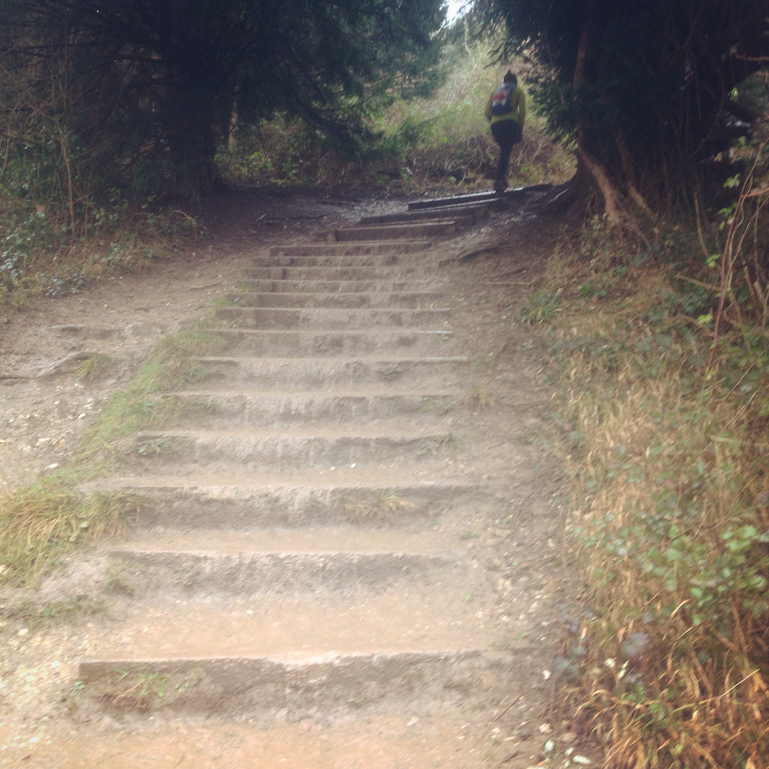As thoughtful as it was of someone to build steps for climbing Box Hill, I had to placate my grumbling quads with the thought that at least I’d be going down them tomorrow, which is basically my favourite thing of all things ever. That being said I don’t think it was the elevation that I struggled with so much as the succession of false endings. Only a few more steps to go, then I’m at the top of the hill. What’s this, round the corner? Oh look, more bastard steps. Plainly I cannot count to 268.