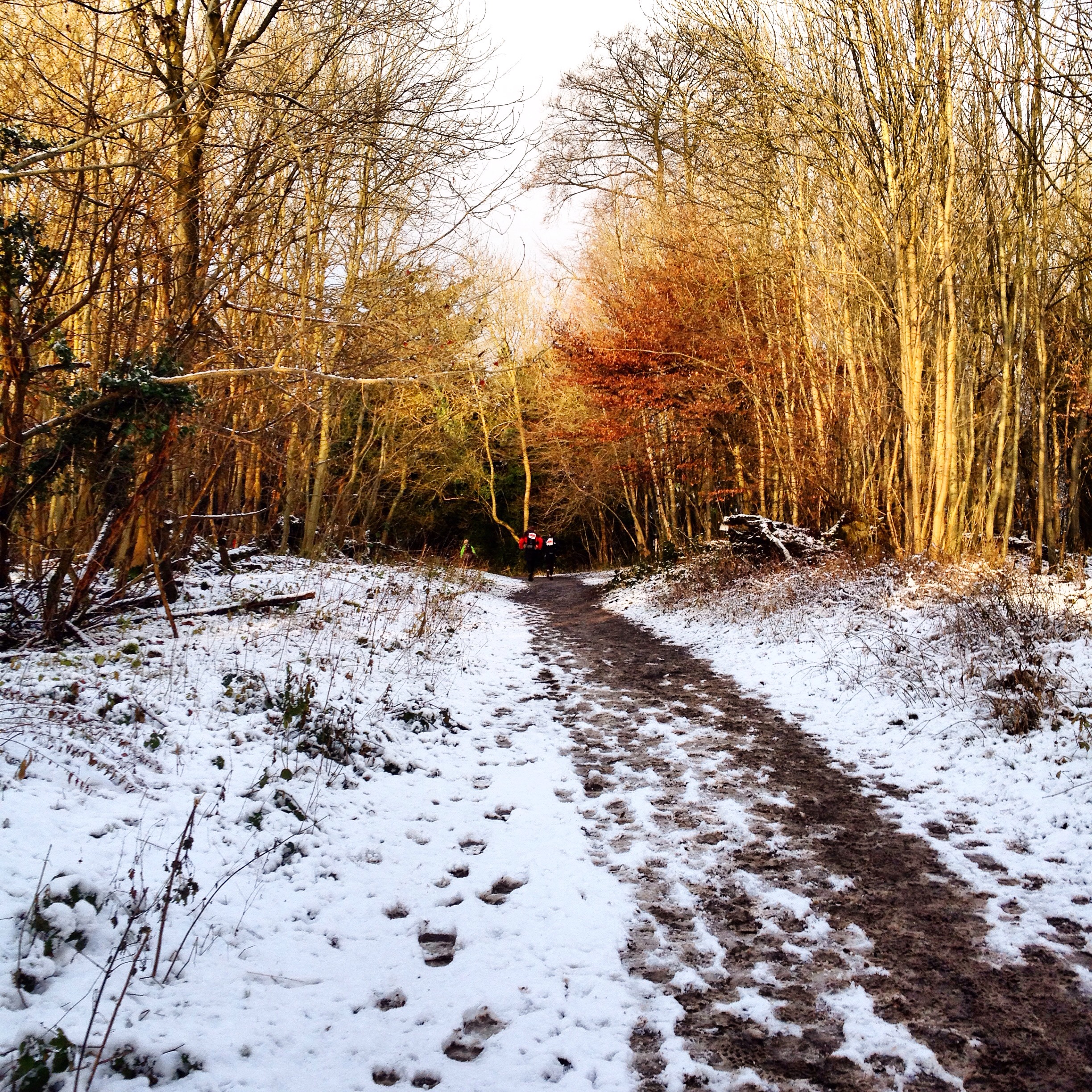 Quite happy to drift off into my own little world for a while and enjoy the scenery, I suddenly realised this was my first snow all winter, living as I do in tropical south west London. I couldn’t help but grin. As I’ve said before, ultra running keeps giving me more and more reasons to indulge my inner child: tearing down hills, eating peanut butter and jelly babies and drinking orange squash, getting covered in mud without feeling guilty, and now snow. There’s your fountain of youth.