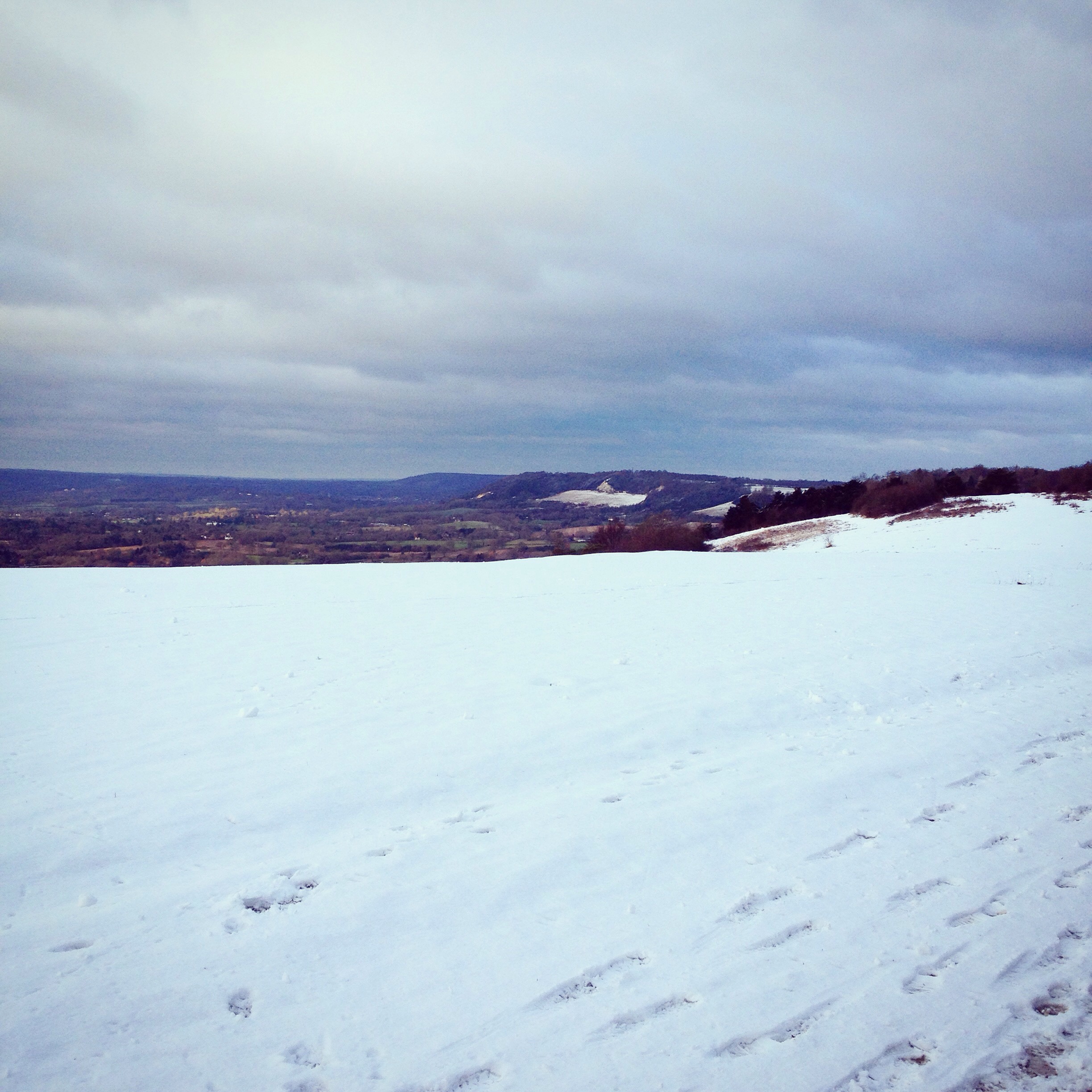 To start the race we would beating a path through settling snow and cutting across private farmland before picking up the North Downs Way. I played a game with myself where I tried to keep Cat in view for as long as possible, which I lost almost as soon as we crossed the road. And then remembered she is Superwoman, and I am not, and I was meant to be pacing myself for thirty three steady but treacherous trail miles. Twice.